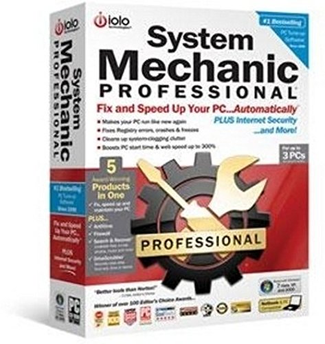 System Mechanic Professional - Fix and Speed Up Your PC...Automatically, PLUS Internet Security & More! System Mechanic Pro, the #1 best-selling and award-winning all-in-one PC Tune-up and security software, automatically repairs errors and fragmentation, cleans out clutter, exterminates viruses, spyware and worms – and automatically tunes up your PC so that it runs smoothly, reliably and up to 300% faster! 5 Award-Winning Products in One: iolo AntiVirus: Rids your PC of annoying pests. iolo Personal Firewall: Blocks internet hackers and thieves. Search and Recover: Undeletes files, photos, e-mail, music, & more. DriveScrubber: Securely wipes data from any drive or device. Boosts Speed - PCs slow down over time due to everyday use. Simple tasks start taking minutes...or hours to complete. Repairs Problems - With normal use PCs accumulate problems that cause annoying errors, crashes and freezes.