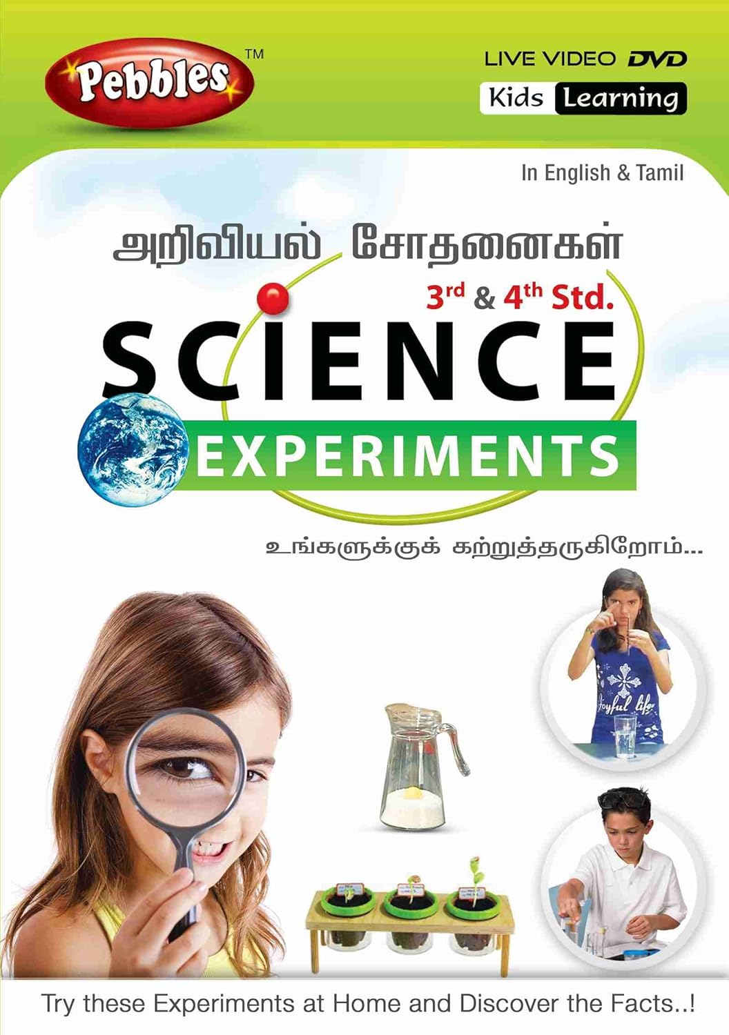 Pebbles presents, "3rd & 4th Std. Science Experiments ", for kids. Science is all around us in our daily life and the more one experiments with science the more fascinated one will become in finding answers. The Science Experiments included in this DVD are full of fun, easy and exciting hands-on experiments These simple, safe and easy to follow science experiments can be done with everyday household materials and Enjoy the fun science experiments, make cool projects with easy ideas for children, learn amazing science & technology facts, show friends & family what you've discovered Have a go at these hands-on science experiments in a classroom, as an after school group activity or at home. Help make learning fun and easy for the kids.